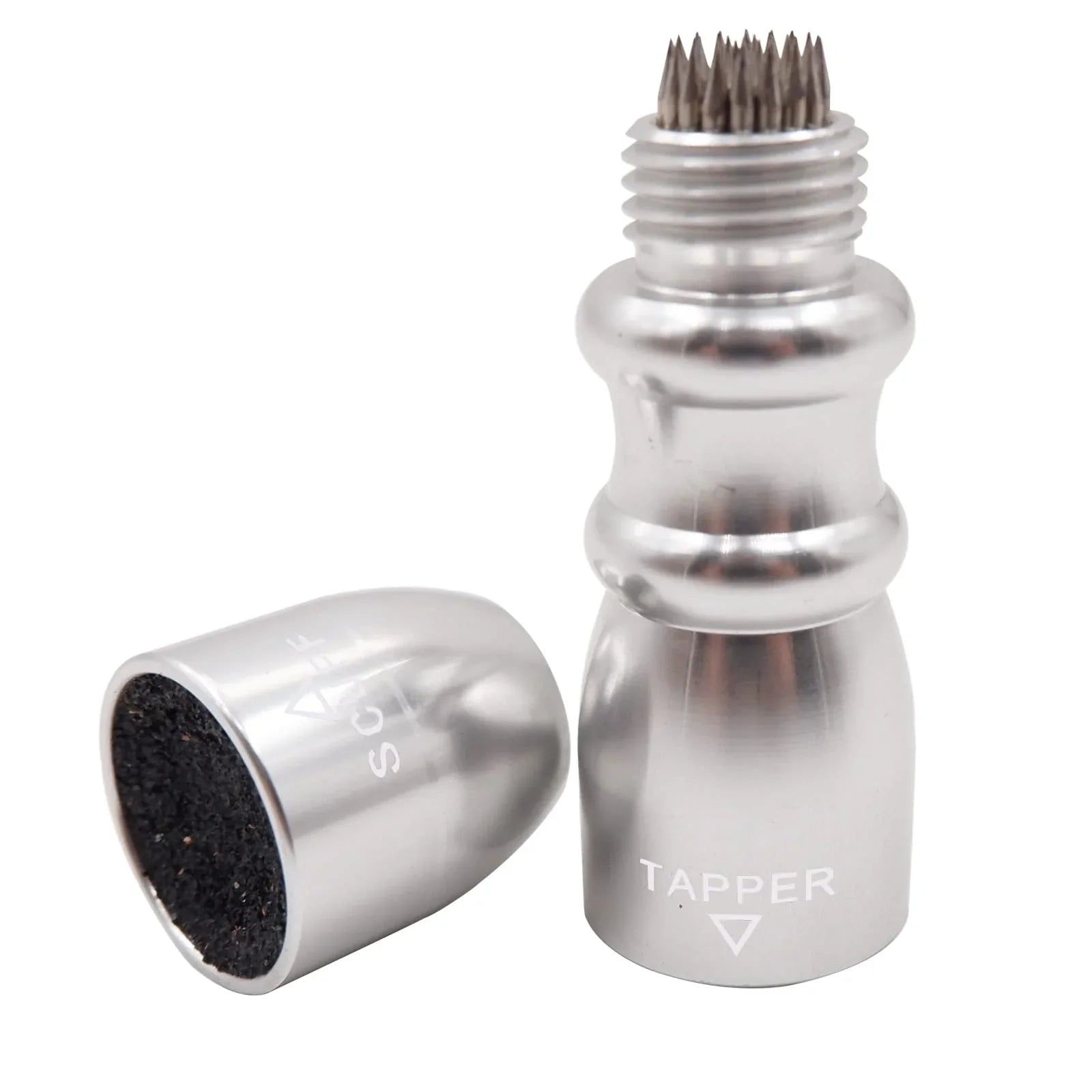 - 【Scuffer, Shaper and Aerator】 Scuffer, simply roughen up the surface of the tip so chalk will adhere to the tip; Shaper, lightly scrape the tip using a rotating motion to contour the tip to the desired dome curvature you are comfortable with; Aerator, slightly break up the surface of the tip so it will hold more chalk.